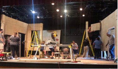 Building the set and planning the production: Volunteers came together to build The Mousetrap set.